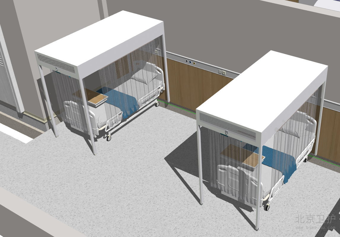 層流床罩(百級(jí)層流罩)又名層流床、單人無(wú)菌室、移動(dòng)層流罩等,將低免疫力病人連病床一起罩于潔凈層流床罩內(nèi),從而起到降低感染的作用。起凈化作用的主要是層流床罩部分,可選配病床。